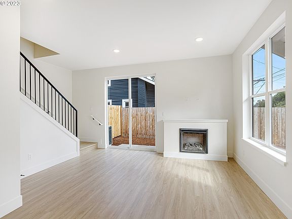 Modern architecture+elevated designs are showcased in the impeccable open concept 2 bed / 2.1 bath units in the vibrant St. Johns, steps to trendy restaurants + shops! Thoughtfully designed, enjoy high-end features, lofty ceilings + neutral, warm designer tones! Quality can be seen with the custom kitchen boasting gorgeous tile work, slab quartz counters + expansive windows! Upgrades grace each room with custom built-ins, tray ceilings, LVP flooring throughout, electric fireplace with gorgeous surround, AC ducted to each room, tile showers + glass door out to fenced patio! Enjoy low HOA dues plus 1-year builder warranty from local boutique builder! 95BikeScore+76WalkScore just 0.09 mi to Fred Meyer, 0.2 mi to New Seasons + Starbucks + just 1 mile to UofP! FHA FINANCING AVAILABLE!(List price is subject to the buyer qualifying for the Portland Housing Bureau - System Development Charge exemption program to promote affordable housing in Portland, call for more info.)