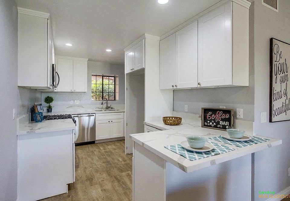 Beautiful remodeled 2 bed 3 bath condo with views of the greenbelt and La Costa Resort. This townhome is located in a small quiet complex, with low $285 per month HOA dues, only one renter, and has a large 2 car garage and extra storage closets. The unit features laminate wood floors, all wood cabinets, calcutta quartz counters, vaulted ceilings throughout, and a large master with dual sinks, 14 foot ceilings, and a large balcony. The cozy fireplace and tons of natural light make this a can't miss!