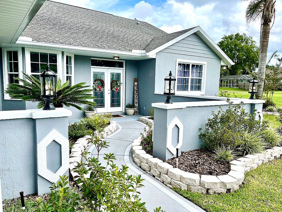 Beautiful home in the desirable HIDDEN LAKE subdivision. Quiet and established neighborhood. Exterior painted gray and interior all freshly painted in 2019, with a new roof in 2006 and A/C unit in 2014. New floors in main living area and master bedroom with new 6" baseboards. Cathedral ceilings in living room, kitchen, master bedroom and en-suite. Renovated kitchen with granite countertops and real wood cabinets and renovated master bathroom. Oversized island with stove top. Double sinks with separate counters in master bath, with two oversized master walk-in closets. Easy to maintain landscaping with newly installed garden and lawn irrigation system. Two level screened-in porch with hot tub and plenty of entertaining space. Two car garage with attic above.