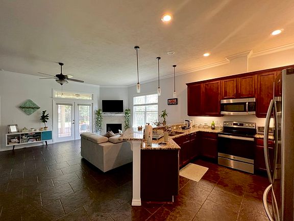 Available now! Ready to immediate move in! This well maintained 3/2 house is in highly sought after Longleaf neighborhood, The home features an open concept split plan with a spacious kitchen, granite counters, wood cabinets, stainless appliances, ceramic tiles in the living room with a fireplace, A cozy fenced backyard with a covered screened patio. The community offers fitness center, tennis. pickleball & basketball courts, pool and recreation facilities. Convenient location and easy access to nearby shopping center, restaurants & Celebration Points. Easy access to I-75, UF & hospital. Renter pays the utility (Water, Gas, Electricity, Internet). You can save significantly on electricity with Clay Electric as your provider! We require all tenants to carry renter's insurance, which protects your personal belongings and includes liability coverage for peace of mind.