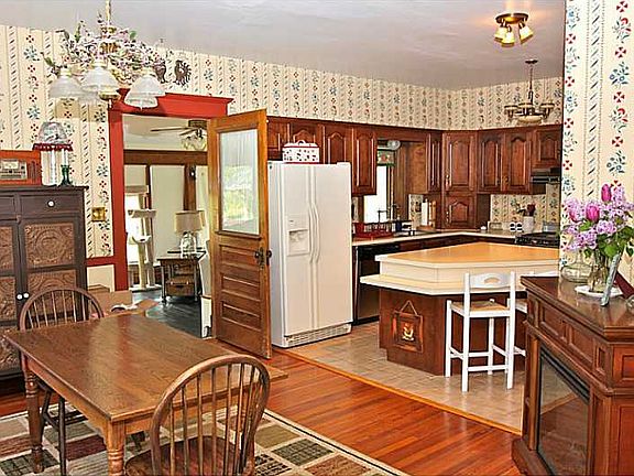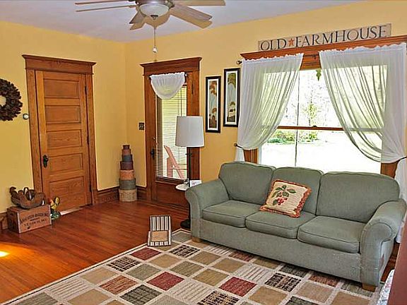 Charming 4bdrm, 3 full BA w/gorgeous fruit trees, landscaping & lrg deck area. Your choice of 2 Mast Stes, 1 on each floor. Beautiful craftsmanship in woodwork, trim & flooring. You just don't find this kind of attention to detail as what you find in these custom old charmers! 2 sky lights, solid wood 5 panel doors, & a cozy daybed area. Stunning cherry cabinets in kitchen & a relaxing all seasons room w/slate/ceramic floors. *4 STAR* New Palestine School. New Roof. New furnace & AC in 2014.