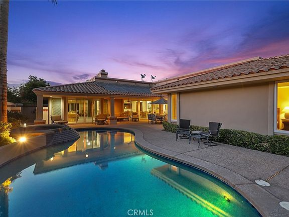 PLEASE SEE THE RATES BELOW. Located in prestigious Indian Wells near the Eldorado Country Club. The highly sought-after location between Hwy 111 and the Santa Rosa Mountains is the most desired city in the desert. Very private oversized 12,600 sqft corner lot. This custom home has 4,731 sq. ft. with a vast great room, wet bar, large separate family room, library, and 12' ceilings. 6 bedrooms (library is used as a bedroom), 5 1/2 baths, numerous built-ins, pool and spa with cascading waterfall and relaxing covered patio. The home easily accommodates 12 people. Two primary suites, one at each end of the home. In addition to the 75" flat-screen TV in the great room and family room, each bedroom has a large flat-screen TV, private bath, and patio. Large granite gourmet kitchen featuring double oven, five burner gas cooktop, LARGE island with preparation sink, and Sub-Zero Refrigerator. Luxury living at its best