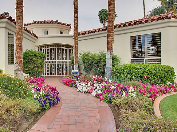 Views and Location ; Beautiful Custom Home situated on a south facing Mountain View corner lot in the heart of Indian Wells. This beautifully upgraded View home has Four Bedrooms and Six Baths(including pool bath). Spacious master-suite includes a large sitting area/office with views, large private bath and walk-in closet. The kitchen is the epicenter of this entertainment home, with easy access to your South View patio and pool area, and both formal and informal living spaces. This is a must see beauty, furnishings available outside escrow. NO HOA dues.
