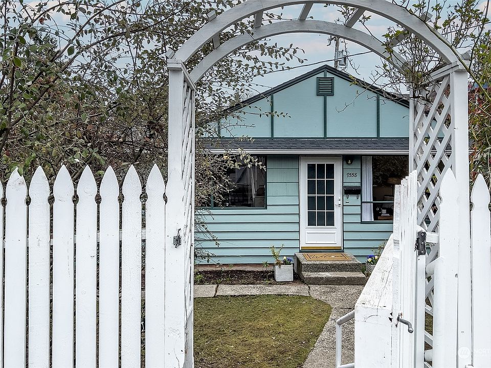 Located off the street sits this charming 1959 rambler in a terrific location! Freshly painted, 3 good sized bedrooms w/original hardwood floors. Street to alley lot. Paved alley accesses 2 off-street parking spots + detached garage. DADU potential?! Garage has huge rooftop deck w/privacy screen, super great for entertaining! Laundry room off kitchen leads out to the private, covered side patio, a great spot on a rainy afternoon. Fully fenced, raised garden beds & garden shed. Original cedar siding in excellent condition w/newer exterior paint. Newer roof & gas furnace. Enjoy visiting many nearby great restaurants, bars, bakeries & shopping at Westwood Village! Great location for transit, I-5 & 99 access. You will love living here!!