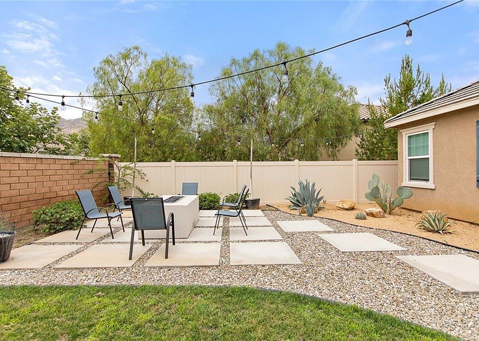Upgraded Single Story Home with PAID SOLAR and Beautifully Landscaped Backyard. 7558 Gray Owl is an absolutely turn-key home in one of Riverside's newest master planned communities, Spring Mountain Ranch. Built in 2017, this home is better than brand new with tons of upgrades including a paid off solar system, laminate plank flooring, builder upgraded covered patio and stylish landscaping with firepit. The paid solar system keeps electric costs at a minimum even with AC running all summer.