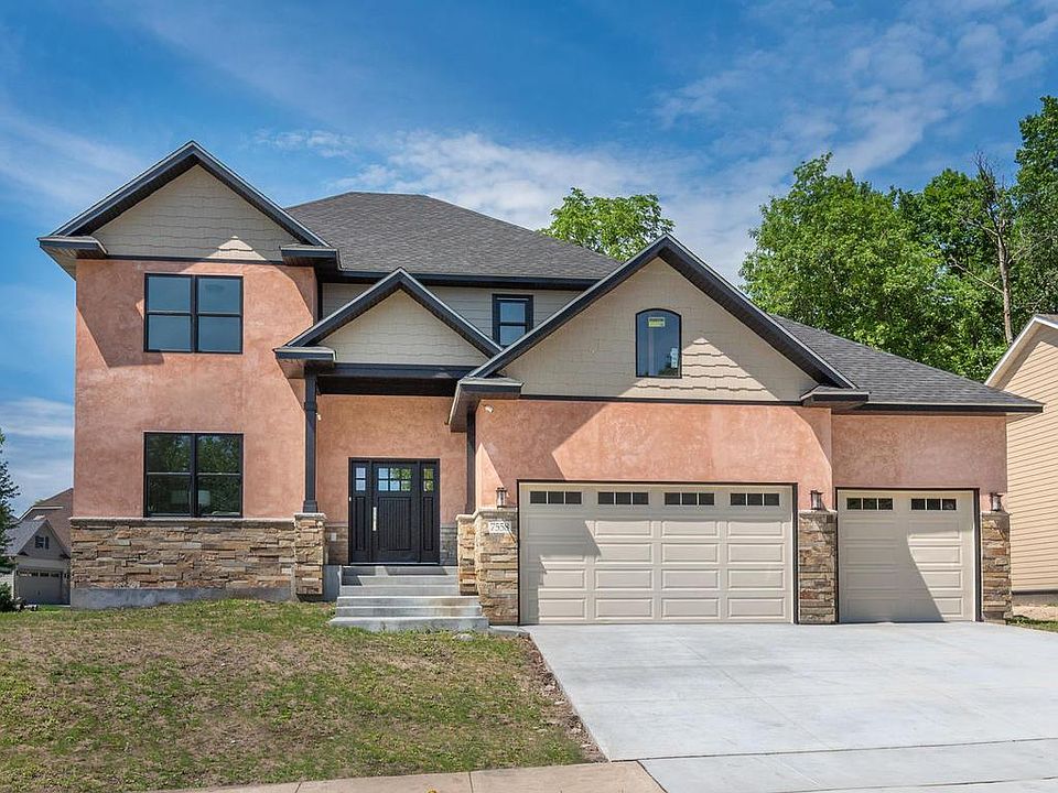 Contemporary two story surrounded by custom executive homes in Oak Bluffs. Features include hardwood floors, built in cabinets, gas fireplace with stone floor to ceiling, granite kitchen countertops, enamel white cabinets, enlarged kitchen island, custom shelving in pantry, closets, mudroom, private master bathroom with soaking tub, walk in tiled shower, upstairs laundry, basement is complete with a wet bar, beautiful lighting package. Construction highlights include poured concrete driveway, spray foam insulation, Marvin fiberglass windows, poured foundation, LP siding and stucco front exterior, basement wired for surround sound, security system, Brian air-to-air exchanger, boiler two zone and zip system house wrap that is with built-in continuous exterior insulation and an integrated air and water resistive barrier, in floor heat in basement and garage for better heating efficiency. No need to wait to build and enjoy this new home now!