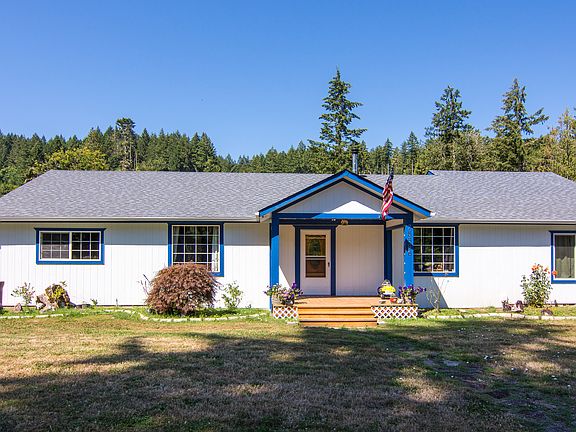 A peaceful and productive 5+ acres boasts a beautifully renovated home, barn, shop and garden all just steps from the Row River. Home has updated siding, roof, heat pump, bamboo floors. The owners raise 15 dairy goats, 17 chickens and bees on this fenced property, w/ tons of sunny gardening exposure. Could easily work for horses. A newer 60x30 metal barn has several stalls and hay storage. A 24x36 shop has roll up door and 220 power.