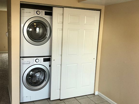 New paint and window blinds. End unit with private parking in small complex. Stove/oven, refrigerator, microwave, dishwasher, stack washer/dryer all included. Private patio with two private parking spaces. Clean and ready to move in! No smoking in unit! Tenant pays for gas electric and water. One small dog (under 40 lbs) and/or one cat allowed. Two private parking spots behind patio.
