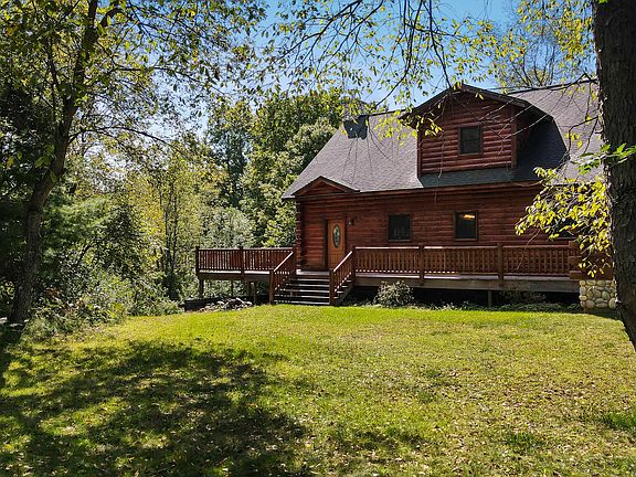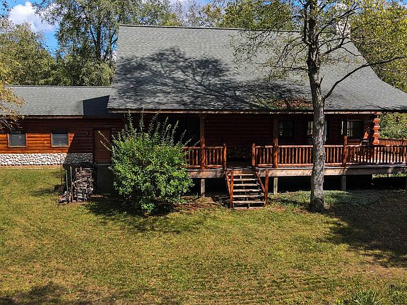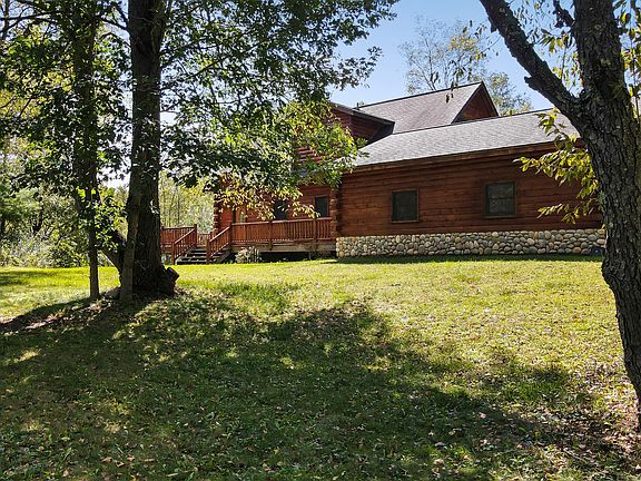 Watch the sun come up over your private frontage on Bear Creek while enjoying your morning beverage on this immense deck! This freshly stained whole-log home, built in 2006 is your new Northern playground. All three levels of this home have lots of natural light without a neighbor in sight! Attached spacious two car garage and a pole barn to house all of your toys and hobbies in the woods. This hand-crafted wooden castle will be cozy all year round with geothermal heat and central air. Bear Creek is a renowned trout stream that rivals any in Michigan.