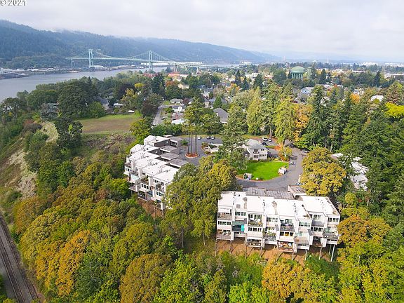 Hidden gem along the Willamette river in the St. John's neighborhood. Top floor end unit condo with unobstructed views of downtown Portland, Willamette River, train trestle bridge and the West Hills. 2BR/1BA with vaulted ceiling in living room. Private deck with storage. Complex just had major updating with new windows, slider, siding and roofs. HOA dues include: water/sewer/garbage, exterior maintenance/landscaping, management and insurance. Community clubhouse with pool.