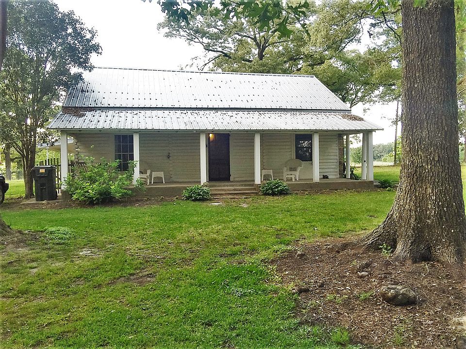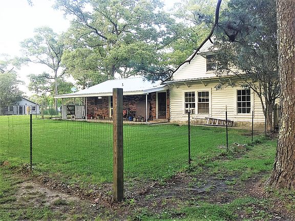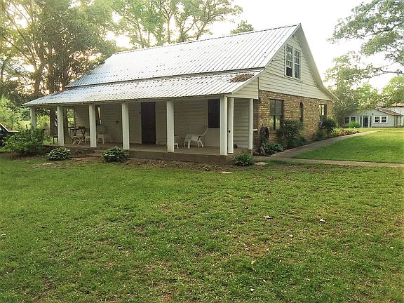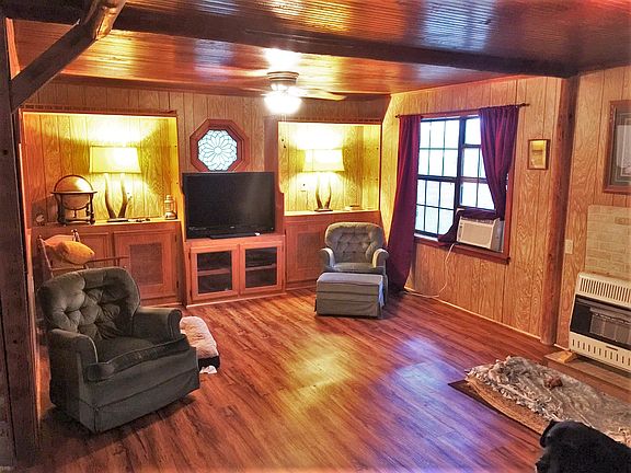 Spacious Log Cabin sits High on Hill, Serene Setting, Beautiful Views! Majestic trees on 3.5 acres and large versatile Acadian Style log and brick home has 4 bedrooms/2 baths, office and gorgeous beaded board ceilings Metal roof is 3 years young. Vintage Solid Wood Dining Room table and 6 chairs to remain as well as new refrigerator, upright freezer, microwave, TV and DVD player. Your pet will feel at home too with large fenced backyard play area and doggie door. 100 gallon propane gas and well water.