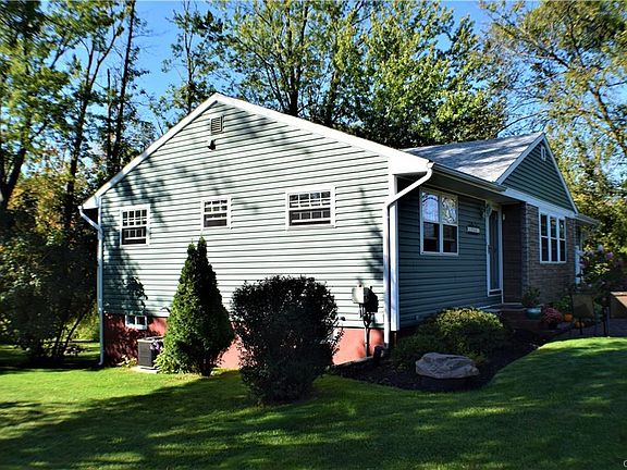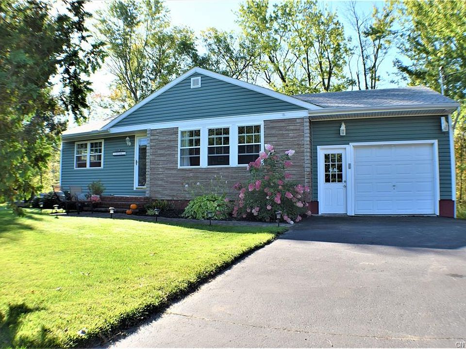 This home packs a lot of punch and is sure to cover most, if not all your criteria.Don't delay! Superb location for a commute to Syracuse/surrounding areas and still feels like a rural setting. Nice size back yard with a storage shed, and some woods to explore. Three bedrooms upstairs, a large eat-in kitchen, walkout basement, spacious family room with ceramic tile, pellet stove, additional spacious bedroom, half bath and a bonus room for storage or workshop. Central air, one car garage with new remote door opener, blacktop driveway. Maintained well, with updates to the roof (front 2 years ago, rear 7 years ago), added over head lighting, sidewalk in 2014, half bath 2019. Property is wired with a dog fence. Schedule Now!