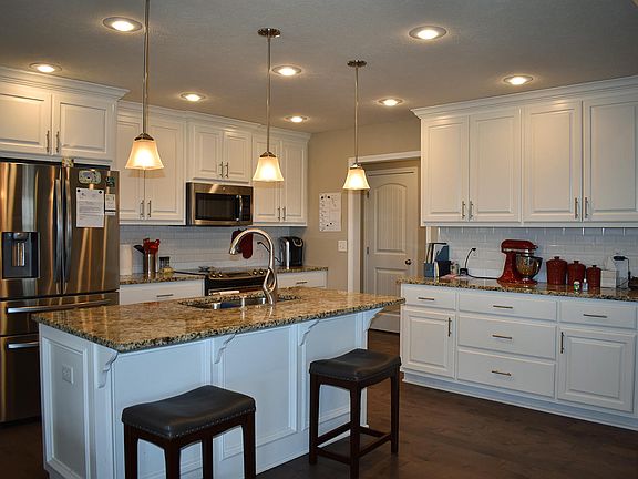 Lovely 5 bed, 3 bath, great family home. @ living areas, wet bar, custom cabinets all topped with granite. Covered deck looking over peaceful backyard. Sodded lawn, sprinkler system, main level master & 2 beds. All brick, wonderful home in Nixa schools.