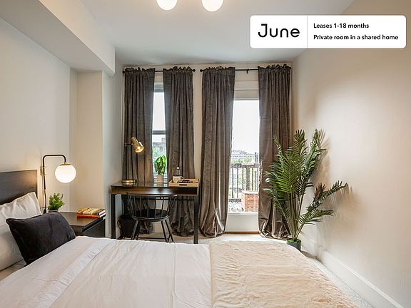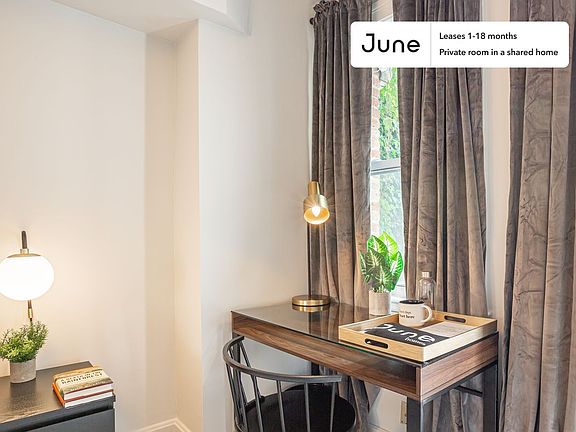 This Queen room in Columbia Heights is available on a 12 month lease or a flexible short term (31 to 364 days) lease. You pick your custom start and end date. Monthly rent rate is determined by furnishing preference, move-in date and move-out date. Speak to a June representative for recommendations on the best stay duration for the lowest rate.