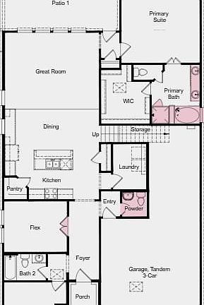 - High Ceilings, Kitchen Island, Open Floorplan, Primary Bedroom on Main