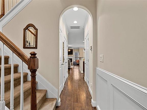 Delightful town home that Looks EXACTLY like the Photos! This IMMACULATE, Lovingly cared for home truly sparkles! Stunning Arched Doorways welcome you! Separate living space as you enter that can be used as an office or a den/sitting space. This is Keystone's Cayman Plan. Open concept Kitchen/ Dining/ Living Room! Granite counters and SS appliances. Refrigerator, washer and Dryer will remain. Engineered hand scraped 5" wood flooring in the main level Living areas. Upstairs boasts three bedrooms, 2 full baths + Laundry room. The Primary bedroom is located at the rear of the home with soaring cathedral ceilings. Spa-like Primary Bath with Dual Vanities, separate shower and spacious Garden soaking Tub! One bedroom is currently being utilized as an upstairs Cozy den space. Exterior backyard has an incredible spacious Patio with a 6Ft tall ALL BRICK Courtyard Fenced space! So Private yet within a community! Literally 2 doors down from the POOL and Clubhouse! Don't Let this One Slip away!
