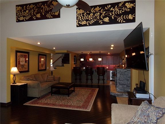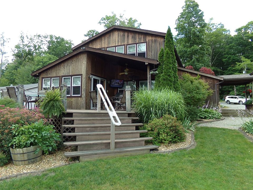 Lakefront home on Lake Stonycreek. Amenities include an indoor tiki bar w/kitchenette, lakeside decks, and plenty of docking space. This 2-story home, w/attached garage, consists of 3-4 bedrooms, 2 full baths, and high-end finishes. Indoor features include the living room with a wet bar and a stone fireplace, a chef-friendly kitchen, and a dining area with a fireplace. Situated on the lake side of the house, the master bedroom includes a wet bar, fireplace, and 2 walk-in closets. The large master bath features cherry cabinets, a soaker tub, and a walk-in shower. This waterfront lot is 0.5 acres and there is an additional 0.30-acre parcel across the road.