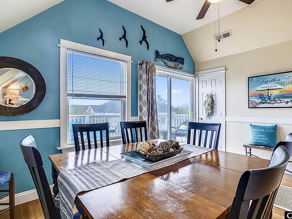 "Chillax Inn" located in the Ocean Sands community is the perfect coastal home with a private pool, hot tub, plenty of space, and updates throughout! This 4 bedroom home utilizes all three floors to maximize space and comfort for all guests. The ground floor opens to a generous entryway, a large den, and a stylish Queen room with updated ensuite. On the middle level there are three additional bedrooms; a charming twin room, a cozy bunk bed room with a convenient Jack and Jill bath, and another elegant Queen room complete with its own ensuite. All bedrooms have tasteful decor and furnishings to create a clean coastal ambiance that flows throughout the home. All bathrooms have been beautifully updated, reflecting the meticulous care and premier quality of Chillax Inn. With this reverse floor plan home, the top floor features the kitchen which has been updated with granite countertops, light blue cabinetry, and stainless steel appliances. The entire floor is an open concept with the kitchen, dining, and living room all receiving plenty of natural light under high ceilings. Outside you will find a top floor sun deck off of the dining room, a middle level deck, a large ground floor patio, outdoor shower, new pool, and a hot tub. Every part of the home, both interior and exterior, has been thoughtfully put to use to maximize comfort, space, and enjoyment. Chillax Inn has been meticulously maintained and updated, from fresh paint and flooring to exquisite tile work and stylish furnishings. Recent updates include new roof 2022, house painted 2023, windows on the third floor 2023, HVAC 2020, and pool and hot tub 2020. Don’t miss this incredible opportunity to make this turnkey coastal haven your own!