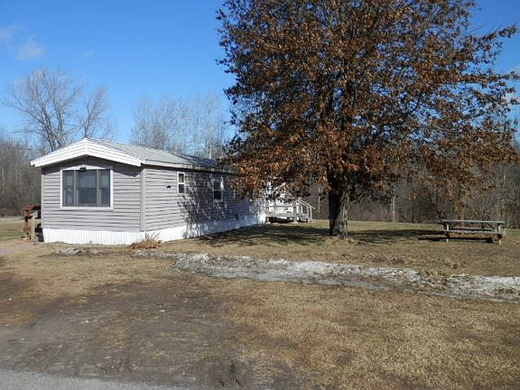 Three bedroom mobile home on 4.3 acre country lot. All appliances convey (Fridge, electric stove, washer, and dryer). Tongue & Groove pine walls in the living room. LARGE 2 car garage with second story storage. New roof was put on garage in the last year. Pond on property as well. Property is currently being used as a rental. Great investment. Or buy the house next door which is also for sale. Live in one and rent out the other. See MLS # 38307. Both properties can be purchased for $150,000. Taxes shown are without the STAR program.