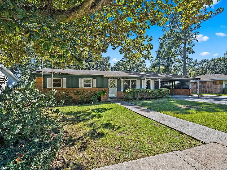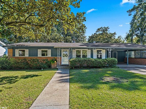 Come enjoy Fairhope living in a quiet neighborhood that’s close to everything- minutes to Downtown Fairhope and the Pier and minutes from Thomas Hospital and shopping- Fabulous LOCATION! The deeded lot is 82’ wide by 127’ deep. This midcentury modern home has been lovingly maintained and it offers what you’d expect from this era home- a brick planter by the front door, a large stone fireplace in the Living Room with a cozy hearth that begs to be sat on and brick pavers on the back patio. The large backyard feels very private and quaint as you’re surrounded by large Magnolia trees and a Satsuma tree. Schedule your visit today with your favorite REALTOR! All information deemed reliable but not guaranteed. Sold as-is. Buyer or Buyer’s Agent to verify all information.