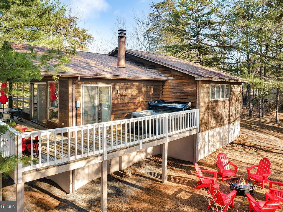 Spacious 2-bedroom, 2-bath newly-renovated chalet cabin in The Woods Resort! The seller has spent over $41,000 upgrading & furnishing the property. Stunning floor-to-ceiling windows and high ceilings, tons of natural light, & inviting living room with a wood-burning fireplace. Central AC and strong WiFi. Outside you’ll find a large wraparound deck and a brand new hot tub. The cabin includes Class B membership at The Woods, and is located just steps from the golf course and 1 mile from the club house/pool/gym. As a vacation rental it generates $51k per year in rental income ($120k over the past 30 months!), and can come with an existing property manager and cleaner. Hot tub and furniture optional, available for purchase. See seller docs for a summary of rental history and financials. $1,000 buyer credit if you continue using the same property manager. Perfect vacation home or investment property!
