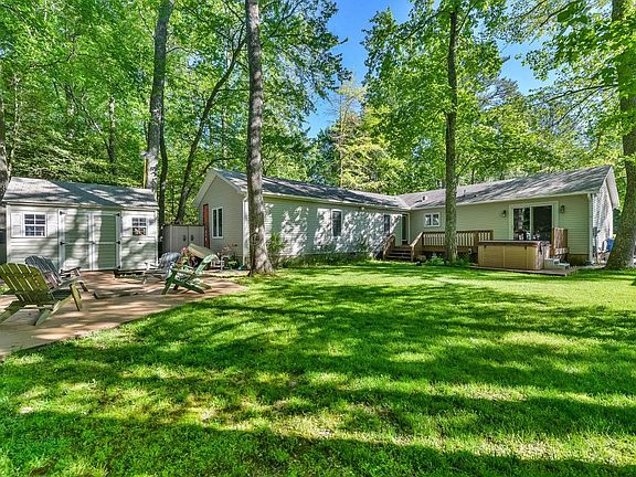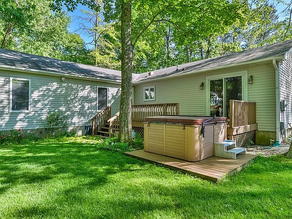 Very spacious & cared for rancher. An addition added a family room & 2 more bedrooms. 5th BR used as an office with built ins. Updated kitchen cabinets, counters & SS appliances. Wood laminate flooring & new carpet. Large shed with electric. Family room & master bedroom open onto sundeck with hot tub. Vacation in your back yard, lots of fun on the patio, ideal for fire pit & has sound system outside & inside. Extra large driveway for boat or to turn around in!