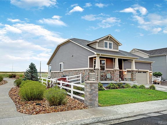 Welcome to this better than brand new Platte Ranch home at the Village at Southgate! This unique ranch home is located right next to the walking trail the leads to an open park! The backyard backs to open space and has a beautiful view of the prairie fields! Other awesome features of the exterior include; smart irrigation system to water the front and the backyard from an app on your phone! The backyard also has a spacious covered concrete patio and an extra concrete slab added onto the covered patio area! This yard is very low maintenance and also comes with a utility shed! The interior features 3 bedrooms, 2 full bathrooms, a full unfinished basement, an eat-at kitchen island overlooking the bright dining and great room and a main level laundry room! This kitchen features a double oven, cook top, and all appliances are included! The private master suite features an ensuite bathroom and a large walk-in closet. Included in this home are smart garage door openers and wifi enabled thermostats, LED lighting, and Ring Doorbell! Throughout the home custom fans and pendant lights that have been added as well! Located conveniently across from Prairie View High School, Village at Southgate is just minutes from Hwy 85 with quick access to DIA. Meritage homes are known for their energy-efficient features, which helps you live a healthier and quieter lifestyle while saving thousands of dollars on utility bills.