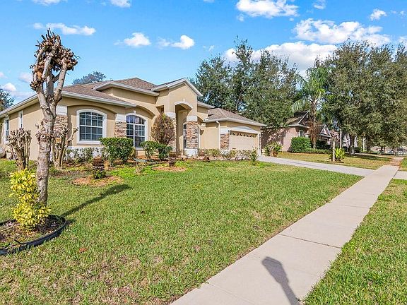 Located in the desirable Rock Springs Ridge community, this beautiful 4 bedroom, 3 bathroom is an amazing home that can make memories for years to come. With a split floor plan this home offers a front formal living room/office/den across from a separate formal dining room. The kitchen opens up to the family room with glass doors looking out to the screened-in patio/pool area which helps bring in beautiful natural light. The master bedroom also offers a glass slider to the pool/patio area, a walk-in closet with built-ins with an attached master bathroom with a separate shower, jacuzzi tub and double sink areas. The 2nd and 3rd bedrooms have a bathroom in between while the 4th bedroom is located in the back next to the 3rd bathroom with a door leading to the pool area. The kitchen has a walk in pantry with shelving, a BRAND NEW gas stove and stainless steel sink. Laundry room is it's own room with Maytag front loader washer and dryer. Solar panels for heating the pool, the house is also wired with for a security system as well as 4 cameras with a monitor for viewing. Conveniently located near the Northwest Complex which has football, baseball, soccer, softball fields, tennis courts, basketball courts, sand volleyball, a beautiful lake with a sidewalk around it as well as a covered Amphitheater where different events are held throughout the year! Highway 429 is within 3 miles, and Mount Dora is a quick commute away with shopping and restaurants nearby. Both the Elementary and Middle schools are on the bus route, but within walking/bike riding distance. This home is ready for a new family with great memories. Schedule your appointment today.