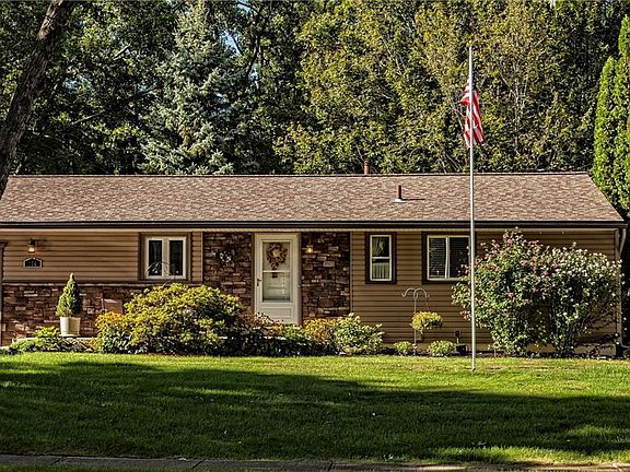 VINYL-SIDED RANCH W/LOVELY NATURAL STONE FRONT & LUSH LANDSCAPING!*NEIGHBORHOOD ST FEATURES SIDEWALKS & MATURE TREES*DINING AREA & LARGE LR OVERLOOKS WOODED/PVT YD!!*ENJOY THE 2-TIERED PVT YD W/PATIO, STONE WALKWAYS, FIRE PIT, & ACCESS TO WALKOUT BSMNT!*HRDWD FLRING THRUOUT*UPDATED KIT FEATURES CORIAN CTR TOPS, TILED BACKSPLASH, RECESSED LIGHTING, & APPLS!*3BR*UPDATED LARGE/1ST FLR BA W/TWIN SINKS*LARGE WALKOUT BSMNT W/200A ELECT SERVICE (FOR WORKSHOP), FULL BA, CEDAR CLOSET, & LOTS OF STORAGE!*CONVENIENT ATTACHED GAR W/OPENER*2-WIDE DRIVEWAY & XTRA SIDE SPOT FOR YOUR RV!!*NEWER ROOF, HI-EFF YORK FURN, BLOWN-IN INSULATION, & T-PANE WNDWS!*SO MUCH MORE*1-YR HOME WARRANTY FOR YOUR PEACE-OF-MIND!*STAR EXMP $737
