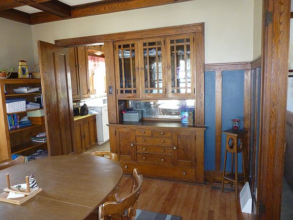 Warm and homey! Natural woodwork, hardwood floors, dining room with built-in hutch. Large yard, deck off back of garage & fire pit. Large 2+ detached garage. There are 3 + bdr. All major work has been done! Roof, windows,siding,sidewalk,200 amp service, central air, furnace, water heater, and even an underground dog fence for Fido! Come take a look!