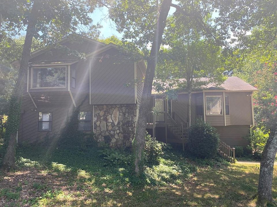 Great 4 bedroom 3 baths in Sprayberry High district that is completely move in ready! NEW Roof, NEW exterior paint, NEW interior paint and NEW flooring to name a few. Large living/flex room at entry with bay window for plenty of natural light then separate dining room for all your entertaining! Eat in-kitchen has freshly painted cabinets NEW granite countertops, smoothtop range and pantry. Separate family room lower level has stone surround gas starter fireplace, bedroom with walk-in closet, full bath and large laundry room with cabinets.