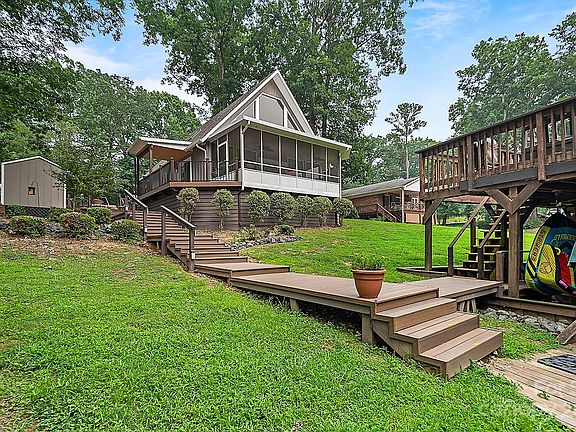 Fantastic Fully Furnished Waterfront Home with Large Boathouse and Full Sundeck! This very beautiful Chalet will make you simile!! Tall cathedral ceilings, rock fireplace with gas logs, nice open floorplan with a massive wall of glass windows overlooking the lake. Beautiful screened porch with on water side with long view down the cove. Large primary bedroom with separate private vanity and walk-in closet on main floor. Nice guest bedroom with full bath on upper floor. Brand new side covered porch with Trex composite decking and new steps to the boathouse. Large patio for grilling and lounging. Situated on a double lot! Very special property, you must see this one!