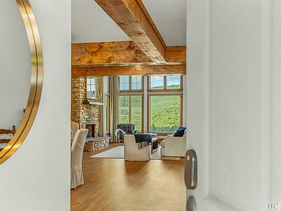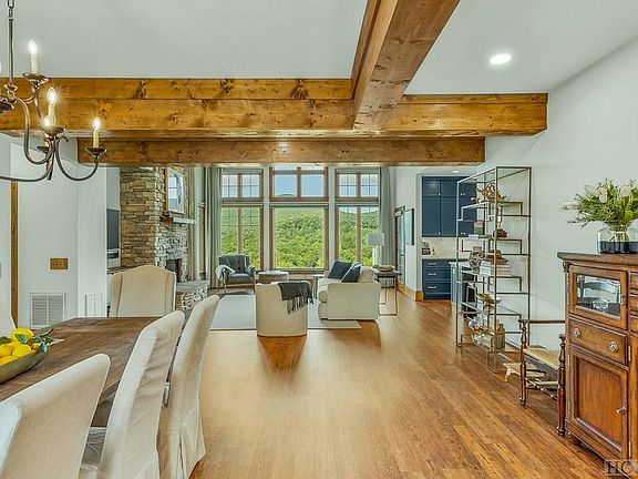 Situated within Trillium Links, this upper unit Trillium Ridge Condo presents panoramic views of Yellow Mountain, the pinnacle of the Cowee Mountain Range. Recently renovated, this home showcases new lower windows in the living room, offering sweeping panoramas of the surrounding mountains. Upon entry, you're welcomed into an expansive open floor plan that seamlessly integrates a dining area, a spacious kitchen featuring a large island, & a living room featuring a stone, gas fireplace. Access to both the back & side decks enhances the allure of this inviting space. The main level is highlighted by a spacious primary bedroom, also with new windows that bathe the room in natural light & frame mountain views. The ensuite bathroom boasts both a stand-up shower & a separate tub area, leading into a spacious walk-in closet—a perfect hideaway for cherished belongings & personal items. Another primary bedroom with its own ensuite bathroom provides direct access to the side deck, while a third bedroom & a guest bathroom offer comfort & convenience. Upstairs, a versatile bonus room awaits, offering endless possibilities for various uses, from a home office to a hobby space. The lower level features a one-car attached garage with ample storage, ensuring both convenience and protection from the elements. An additional parking space adjacent to the garage adds practicality to this distinguished property. Embrace the unparalleled lifestyle offered by Trillium, renowned for its outstanding amenities (some requiring membership), and its close proximity to Cashiers' vibrant town center. Don't miss this exceptional opportunity to experience the beauty and comfort this home has to offer.