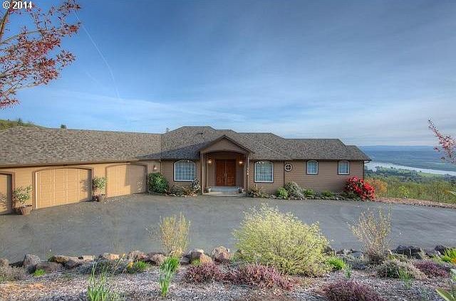 Custom built home with amazing year round views of the Columbia River, Portland lights, Oregon Coast Range. Open gourmet kitchen with island, great room with fireplace, formal dining room. Master is on the main level. Downstairs features separate guest suite or master bedroom, bonus room, family room, 2 additional bedrooms and 2 baths. Large 3 car garage, dual zone heating system, 2 easy to maintain acres, in a desirable neighborhood.