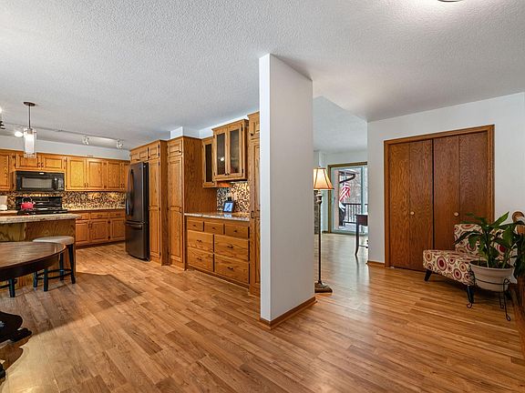 Updated walkout rambler on private, wooded .53 acre pond lot, just minutes to downtown Chanhassen and Lake Ann Park. This well-kept urban oasis is move-in ready with new roof, carpet, paint, lighting, and vinyl flooring, and newer Andersen windows. Main level features eat-in kitchen with built-in buffet, granite counters, island seating, and informal dining area. Vaulted living room with new gas fireplace and custom tiled mantle. Spacious primary suite with bedroom, sitting room/office, full bath, walk-in closet, and private access to deck. Enjoy the change of seasons from the three-season porch (newly carpeted!) and 35’ no-maintenance deck, both overlooking the yard and pond. Attached 2.5 car garage with storage walks into mudroom and powder room. Finished lower level has family room with boulder-mantled gas fireplace, two additional bedrooms, ¾ bath, laundry room, and walkout to huge, covered patio. Fenced landscaped yard, with birds galore!