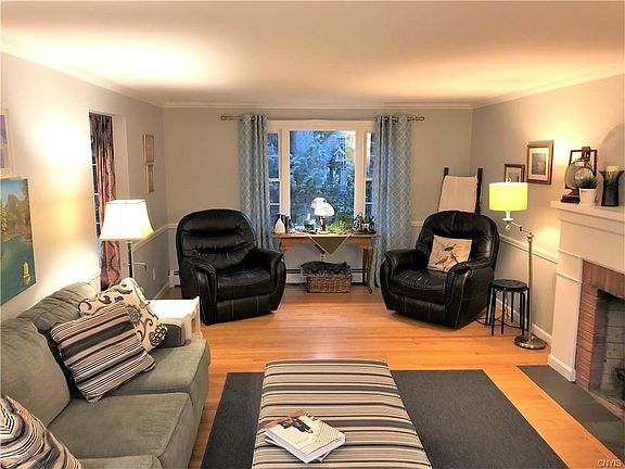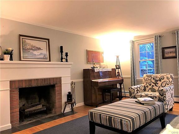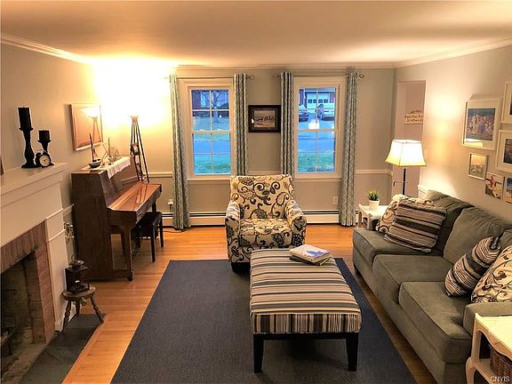 Move right in to this well maintained stately colonial home! You will notice the pride of ownership as soon as you pull into the driveway. Newer landscaping out front, open front porch w/2 story overhang make the curb appeal striking on this home.When you walk into the foyer, a large living room is on the right and over sized dining room on your left. The living room has beautiful hardwood floors and a wood burning fireplace to cozy up in front of. The eat in kitchen has been updated and has access to the patio through sliding glass doors. Additional living space in the finished basement (not counted in the square footage) has laminate floors and a gas fireplace. Four large bedrooms with hardwood floors on the second floor. Master bedroom has a half bathroom attached. Great private yard!