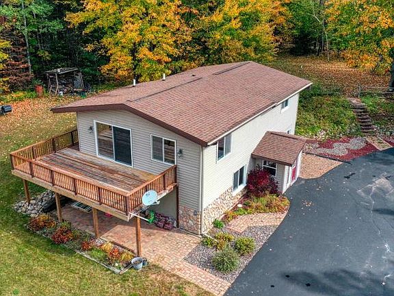 A must see! This nicely remodeled home 3 Br, 2 BA home is conveniently located on 2.8 acres in Sugar Camp, between Eagle River. The warm and inviting interior features knotty pine vaulted ceiling and custom hickory cabinetry in the kitchen, with open concept dining and living room areas. The expansive deck wraps around the home, with a paver patio below-- great outdoor gathering spaces. Both levels are fully finished living areas, master on lower level with an awesome walk-in closet. Hydronic heat source, 2 split AC units, paved driveway and excellent Internet service. Privacy between neighbors, property is well wooded and includes a home with over 2000 sq. ft of living space and a garage built in 1997 that totals 1872 sq. ft. on two levels! The garage is heated, with workshop upstairs and a loading dock door for ease of use. Take a look today, you'll be ready to call this HOME!