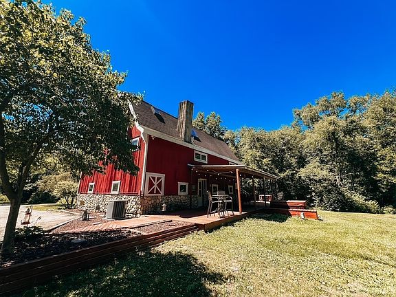 NEW Roof, Electrical updates, Old Chimney Removed....all completed while on the market. This home is ready to move in. Step back in time and experience modern living in this stunning 1886 barn converted into a home, nestled on a spacious two-acre lot. This unique property combines historic charm and contemporary comforts, offering ample space and many amenities. Enter the home on the main level to a large family room with a fireplace, a bedroom, bathroom and convenient laundry. Take the wide stairs to the second level to find a large living room with beautiful stone fireplace, galley kitchen with stone pass through to the open dining area, two bedrooms, and a bath. The loft area is on the 3rd level, make this your office, reading room, or den - use your imagination. This is where you will find the private master suite. Step out side on the full length deck, hot tub for year round enjoyment, an above ground pool and a Three-car matching barn garage with a set of stairs on the back that lead to the loft, providing plenty of storage or workspace. This extraordinary home offers a unique blend of history and modern amenities, making it perfect for those seeking a one-of-a-kind property. The expansive lot provides privacy and space for outdoor activities, gardening, or simply enjoying the wildlife as they pass through. For more details or to schedule your private viewing call today.
