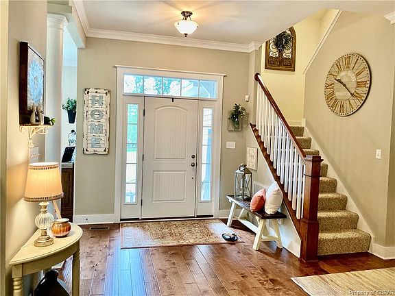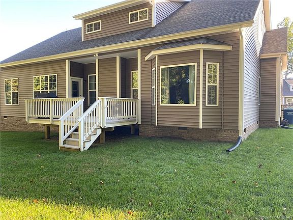 A BEAUTIFULLY APPOINTED FAMILY CENTERED HOME WITH LOTS OF UPGRADES ON THE GATED ISLAND IN PATRIOTS LANDING. FIRST FLOOR PRIMARY BEDROOM WITH EXPANDED BATH AND LARGE WALK-IN CLOSET, TILE THROUGHOUT ALL BATHS, GRANITE ON ALL COUNTER SURFACES. STAINLESS STEEL APPLIANCES, OPEN LIVING ROOM AND A BEAUTIFUL KITCHEN WITH UPGRADED CABINETS AND SOFT CLOSE DOORS, BREAKFAST AREA, ISLAND WITH STOOL SEATING, A FORMAL DINING ROOM, 4 BEDROOMS, THREE FULL BATH, SECURITY SYSTEM, WATER TREATMENT SYSTEM AND A NICE REAR YARD BACKING TO A WOODED AREA, PROVIDING PERMANENT PRIVACY FROM BEHIND AND IRRIGATION IN FRONT AND REAR YARD. ALL APPLIANCES CONVEY INCLUDING THE WASHER AND DRYER THE SECOND FLOOR FEATURES A HUGE GREAT ROOM, BEDROOM, AND FULL BATH PLUS AN AREA FOR AN OFFICE OR LEARNING CENTER, AND A HUGE WALK-IN STORAGE ROOM THAT CAN BE FINISHED INTO ADDITIONAL LIVING AREA. A BEAUTIFUL HOME WITH GREAT COMMUNITY AMENITIES WITH A CLUBHOUSE, POOL, TRAILS AND LAKES. PATRIOTS LANDING IS JUST OFF AT THE QUINTON EXIT ON I-64 BETWEEN WILLIAMSBURG. WITHIN 20 MINUTES TO DOWNTOWN RICHMOND OR WILLIAMSBURG.