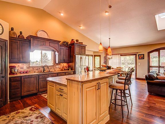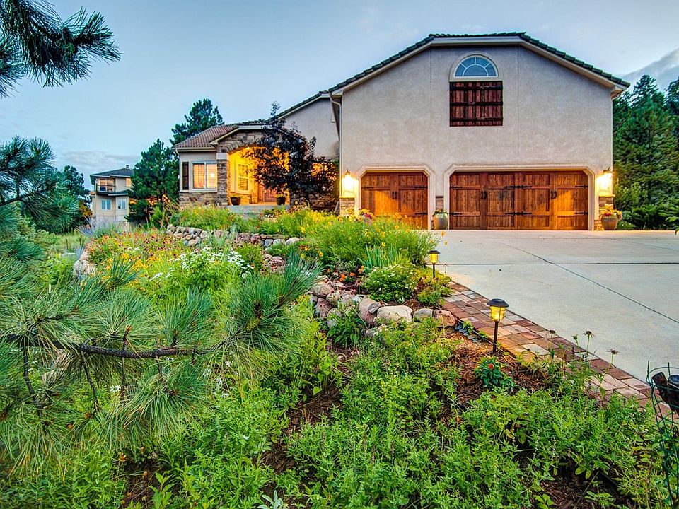 This Luxurious Rancher by Goetzmann Custom Homes is located in the High end Woodmen Oaks Estates Subdivision on a 1.1 acre lot! Original owners have lovingly remodeled and cared for this Gorgeous Home tucked away in this beautiful District 20 Neighborhood! The large, tiered, colorful perennial garden on the front and backside of the home is reminiscent of an English Countryside with majestic Rock Formations and Colorado sky as your backdrop! The lot backs to open space and has 4 bedrooms, 3 baths, and a 3 car garage. This home is MOVE IN READY, and better than NEW with the gorgeous location, size of the lot, and over $200K in remodeling and upgrades. The outside of the home has new stonework and new garage doors and shutters. The landscaping and city lights views add ambiance and character. Entertain from either of your quaint patios surrounded by nature and flowering plants.