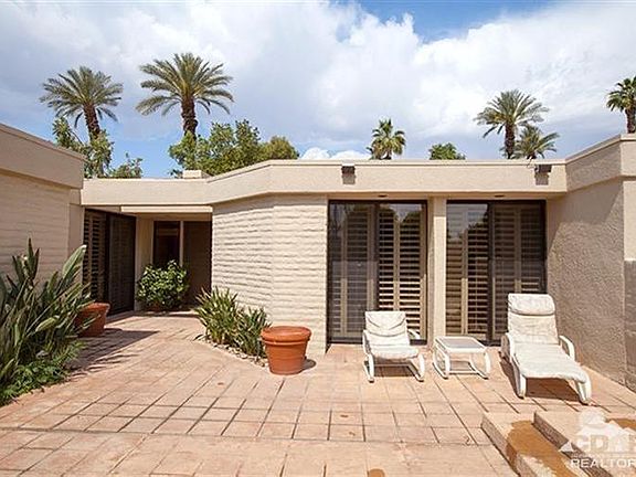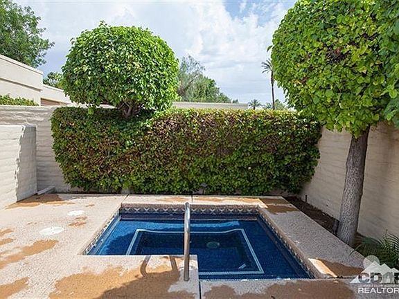 Very spacious home at Desert Horizons CC in Indian Wells! This home features a private entry courtyard with built-in spa, which leads to double entry doors. This Grand Room plan, with soaring ceilings, has 4 Bedrooms and 4.5 Baths. One of the Bedrooms is being used as a den/office. Extensive use of natural stone includes marble floors, split-faced marble fireplaces in the living room & master bedroom, granite countertops in the kitchen. There is a 2-car garage, plus a golf cart garage. Located at the end of an interior cul-de-sac and just steps to a community pool & spa.
