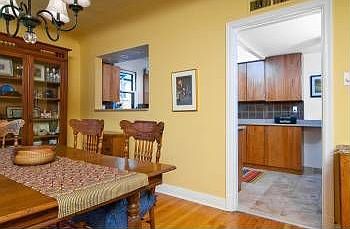 Offers large formal rooms with beautiful architectural details & hardwood floors.