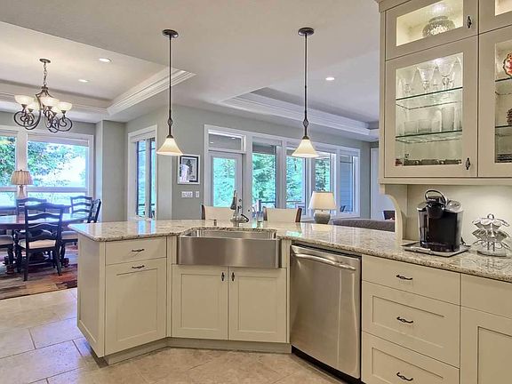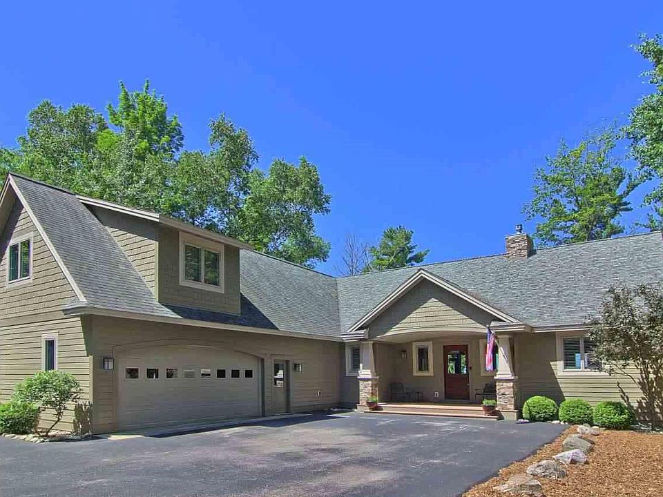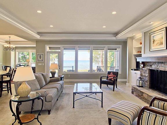 GRAND TRAVERSE BAY! As you arrive at this home you will be impressed with the serene and secluded setting set back in the woods. Take time to listen to the birds sing as you take in the professional low maintenance landscaping, the outdoor brick circular seating area and covered front porch. As you begin your tour of this immaculate, quality-built home you will discover a spacious living room with expansive views of Grand Traverse Bay and stone fireplace flanked by custom built-ins. The kitchen is accented by a curved granite counter top with bar seating, stainless steel appliances and farmhouse sink, seeded glass upper cabinet doors, tiled backsplash, the large pantry will delight the cook in your family. Main floor master suite with gorgeous views of your private frontage, his & her walk-in closets, spacious master bath with dual sinks, linen closet & more. The dining room features great views and a tray ceiling. The four bedrooms and four baths will give you plenty of space for family and friends. Feel the cool breezes off the bay in the screened in porch with bead board ceilings. There is a large bonus room above the 2-car attached garage. The 10-foot ceilings give you an extra feeling of spaciousness. Take the path to your private Grand Traverse Bay frontage, get ready to feel the sand between your toes and the waves lapping your legs. Just imagine the glorious sunsets you will experience from the comfort of your living room or from the low maintenance deck. This picture perfect home is just waiting for you to call it 'home' and being making memories of a lifetime.