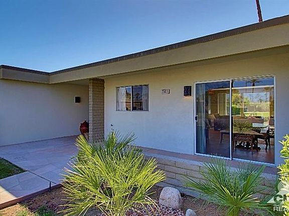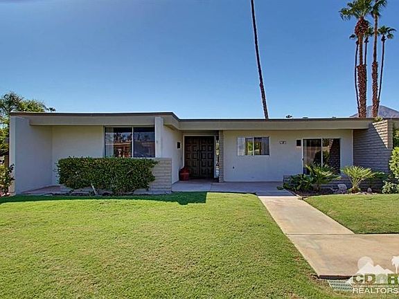 Million Dollar Views! A mid century inspired architectural gem offered turnkey furnished, ready to be enjoyed THIS SEASON! 2 bedrooms/ 2 bathrooms complete with furnishings and fine details in the upgraded structure including internal wall support, tankless, water heater, enhanced electrical, newer appliances and more! Steps away from the pool, expansive greens belts AND patios off of each living area make this the perfect setting for indoor/outdoor living! At Casa Dorado you can tune up your short game here, on the four hole pitch n'putt golf course that meanders through the development. Be prepared to enjoy to enjoy the good life; Indian Wells where residents golf at two champion courses for a nominal fee, have use of the gym facilities at Hyatt Grand Champions and benefit from additional local discounts. You won't find views like this anywhere else. Start enjoying the community of Casa Dorado, featured on the tour of fine homes during Modernism Week.