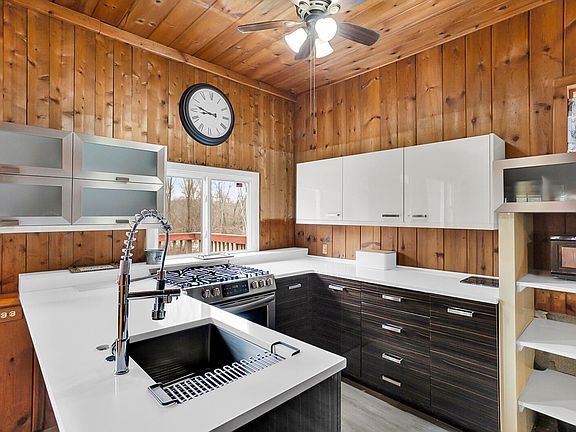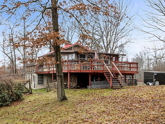 Enjoy this hunter's paradise as you take in the beauty of this 7 acre property. Home offers 3 BR; 2 BTH; new kitchen w/quartz counters, mostly all new replacement windows, sauna, new carpet and is ready for your family to make it their own. Home boasts many perfect areas for parties or large family gatherings while enjoying the fireplace w/wood burning insert for those chilly nights. It's sure to make one feel extra cozy and right at home. Outside, property has large deck, fenced in area for animals and a 24x36 poll barn w/cement floors & drain. Property offers mature trees, trails, small creek w/foot bridge, deer, turkey, and is truly a beautiful area for all.