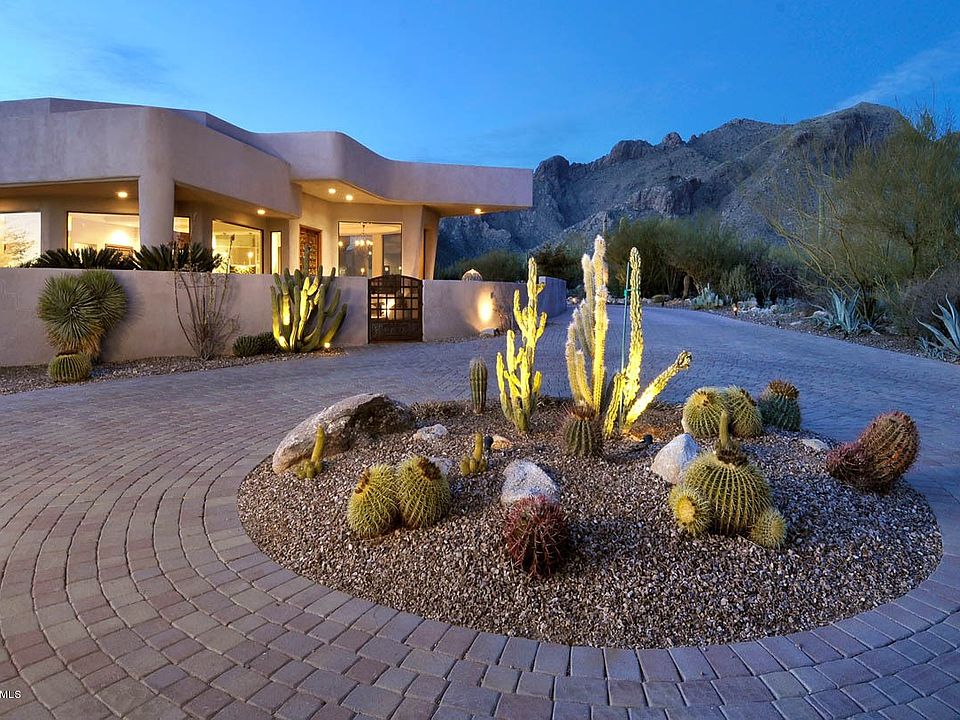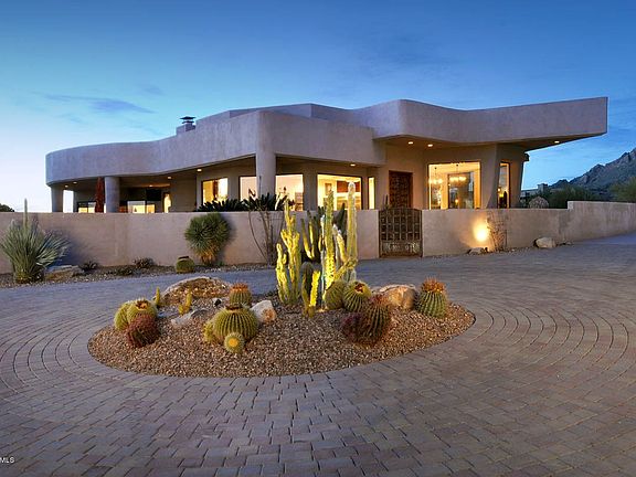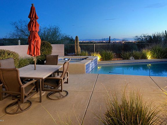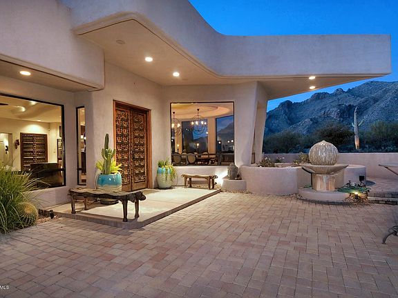 For more information on this property, contact the Listing Agent, Janell Jellison at (520) 918-5469 or JanellJ@Mindspring.com. This fabulous soft contemporary home has incredible views in all directions, mountain, sunsets and city lights, with a wrap around patio to enjoy it. Plus home was bulit with views in mind, so they can be enjoyed in each room. The great room has scored concrete floors, large formal dining, open kitchen w/granite counters and island, spacious pantry. Luxurious master w/steam shower, and office with stunning city light vistas. 2nd office or den/exercise room and 2 more bedrooms. Exotic antique doors, full smart home automation system with speakers thruout, oversized 3 car garage. Outdoors enjoy outdoor shower, putting green, salt water pool, fireplace and dog run. This is a very special home in popular gated foothills neighborhood close to shopping & restaurants.