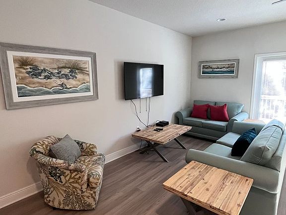 Welcome to Hathaway Town-homes! From the moment you enter this FULLY FURNISHED town-home, you will be impressed by the beautiful interior doors with nickel hardware, vinyl plank flooring and designer lighting package. Plush carpet is in all bedrooms. The kitchen is equipped with stainless Steele appliances including a smooth top range, microwave and dishwasher. Upstairs you will find 3 bedrooms and 2 baths. 2 of the bedrooms share a bath with granite counter-tops and shower/ tub combo. The Master bedroom has tiled shower, a double vanity with granite counter-tops and a walk-in closet. Private back deck. COMMUNITY POOL!! Located close to Navy base, Beaches and Pier Park!-Trash and lawn care included!