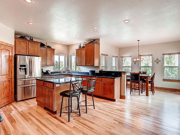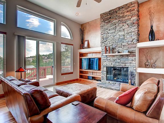 Beautiful custom walk-out Ranch home situated high up on a private cul-de-sac, city lights, mature pines, great views*Main level open design with 12’ basement ceilings, beautiful natural knotty Alder 7 foot doors with extensive Hickory flooring throughout*Grand Foyer opens up to the Formal Dining Room with coffered ceiling, designer faux paint.*A full wall of windows greet you in the Great Room along with a floor to ceiling Stone Fireplace flanked by built-ins. Island Gourmet Kitchen with slab Granite, stainless steel appliances, medium Maple cabinetry, planning desk, pantry and counter top that opens to a large breakfast room*Walks out to the expansive composite deck bringing tranquility of the mountains to your back door*Owner’s retreat with deck access has a luxurious adjoining bath with jetted tub and large walk-in closet*A second bedroom / office with a full bath and mud room complete the main level*Walk-out lower level has fun for all, room for ping pong & pool table, step behind Wet Bar plus 2 bedrooms separated by Jack & Jill bath, separate Guest Suite and full bath, plus the tiered Theater Room includes large state-of-the art VTEC screen, Epson projector and all components.