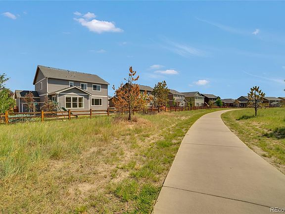 Beautiful and highly popular 2 story Hemingway with Sun Room offers a fabulous location within desirable Cobblestone Ranch. This home checks all of the boxes! The home features a spacious entry with full "natural finish" hardwood flooring flowing into a front office with glass french doors and built in cabinetry. Optional Gourmet kitchen with upgraded dovetail "natural finish" cabinetry features a massive slab granite island, gas stove, all stainless appliances, walk in pantry, and double ovens all within easy access to the sun room/flex space/dining area. The balance of the main floor encompasses 9 foot ceilings with 8 foot tall doors throughout, a large family room featuring a gas fireplace, a ceiling fan and built in speakers all with convenient access to the powder bathroom. The upper level has 4 total bedrooms, 2 full bathrooms, a spacious loft perfect for the kids, upper laundry room, a large master suite with 5 piece bath and a generous master walk in closet. The basement is unfinished and has a great layout for when it's time to finish the basement. Outside the property features a large, roomy patio with ample play area in the fully landscaped and fenced yard. Don't miss out on this very popular Hemingway with 3 car garage backing to open space!