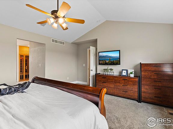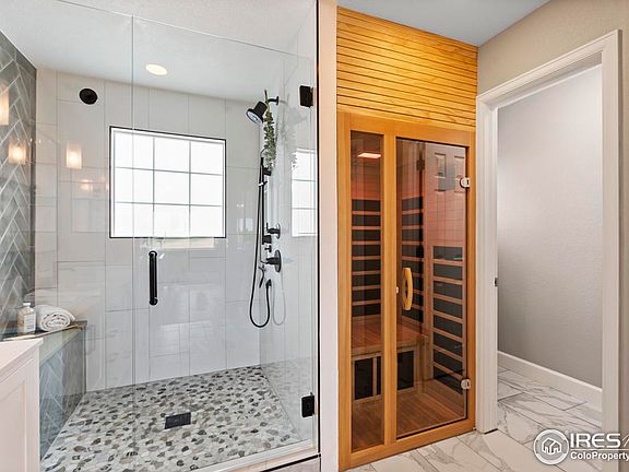 Discover the perfect blend of comfort, style, and outdoor splendor at 7563 Triangle Drive, a meticulously upgraded two-story home with a finished basement. 4 generous bedrooms and 3.5 luxurious bathrooms, this residence is set on a picturesque lot with sweeping views of rolling hills and incredible mountains in the distance, creating a serene backdrop for your daily life. The heart of the home is a large open-concept living area, upgraded with granite kitchen counters, a deep double sink, updated tile backsplash, and new stainless steel appliances, including a gas range! The elegant light fixtures on the main floor heighten the ambiance, matched by newer carpeting throughout. The private office with sliding barn doors affords versatility to your living space. Upstairs is the renovated primary suite, featuring a beautiful double-sink vanity, custom shower with intricate tiling, quartz shower bench, and luxury finishes. The ensuite's highlight is the two-person infrared sauna - a private oasis. Shared bathroom upstairs include sleek new flooring, fresh paint, contemporary light fixtures, a new toilet, and a chic vanity. Casablanca Ceiling Fans and new carpets add a layer of comfort and luxury to every room. The basement, presents a second ensuite bedroom, full bathroom, and a recreational room-pre-wired for surround sound for potential movie nights. Outdoor living is redefined with a custom-designed backyard featuring a hybrid Red Wood and Trex Pergola and Deck, a radiant sundeck, planter boxes, and raised garden beds. A new concrete pad with a built in fire pit creates an inviting area, perfect for entertaining! Enjoy the open space and trail access with stunning views. Additional upgrades include an epoxied garage floor, new tile in the laundry room, and an updated powder room. Situated in a prime location with community amenities like a neighborhood pool, schools within walking distance, and the charm of the country at your doorstep!